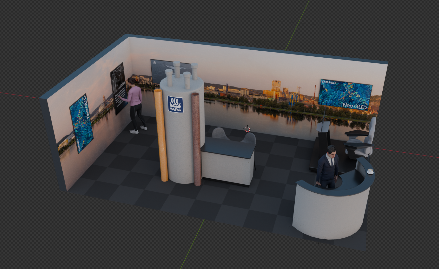 I et av prosjektene våre på jobb fikk vi en litt annerledes utfordring: å utarbeide forslag til hvordan standen vår på en kommende messe kunne se ut. I stedet for å jobbe med skisser på papir og PowerPoint, bestemte vi oss for å gå en mer visuell vei ved bruk av 3D og VR for å teste idéer.
